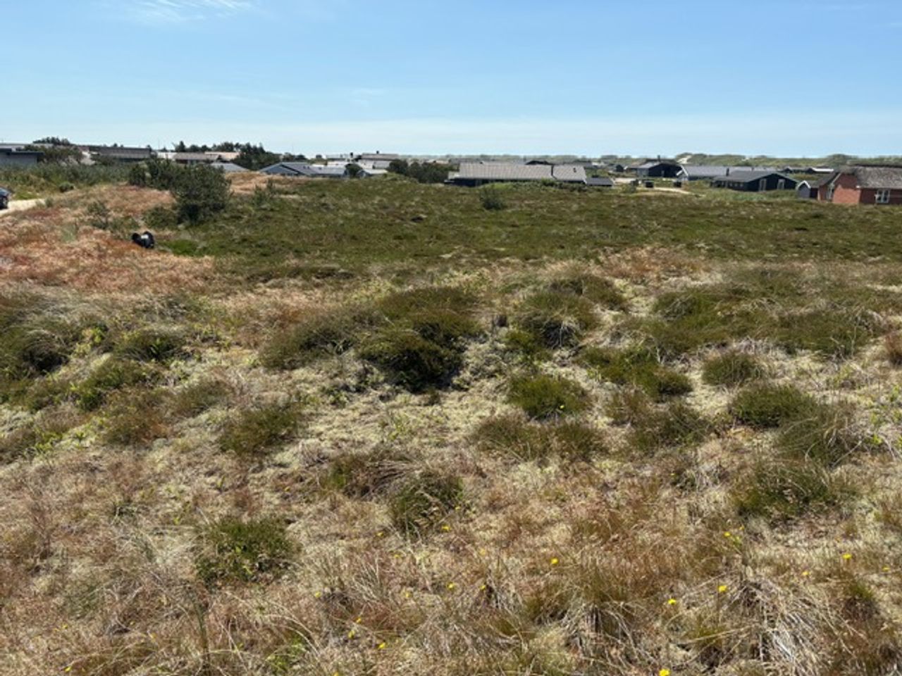 På havsiden af landevejen, der fører gennem et af Danmarks smukkeste naturscenerier mellem Ringkøbing Fjord og Vesterhavet finder vi denne attrative lyngkuperede sommerhusgrund ved blind stikvej kun 5-600 m`s gang fra det evigt brusende Vesterhav ved dejlige Bjerregård Strand. Området er et næsten fuldt udbygget sommerhusområde og der gælder for langt de fleste grundes vedkommende en begrænsning, så der maximalt kan opføres sommerhuse på 120 m2 boligareal + carport og redskabsrum samt terrasser (bemærk: idag tæller udhæng over 50 cm samt overdækkede terrasser med i det såkaldte "fodaftryk" og kan begrænse det tilladte boligareal.