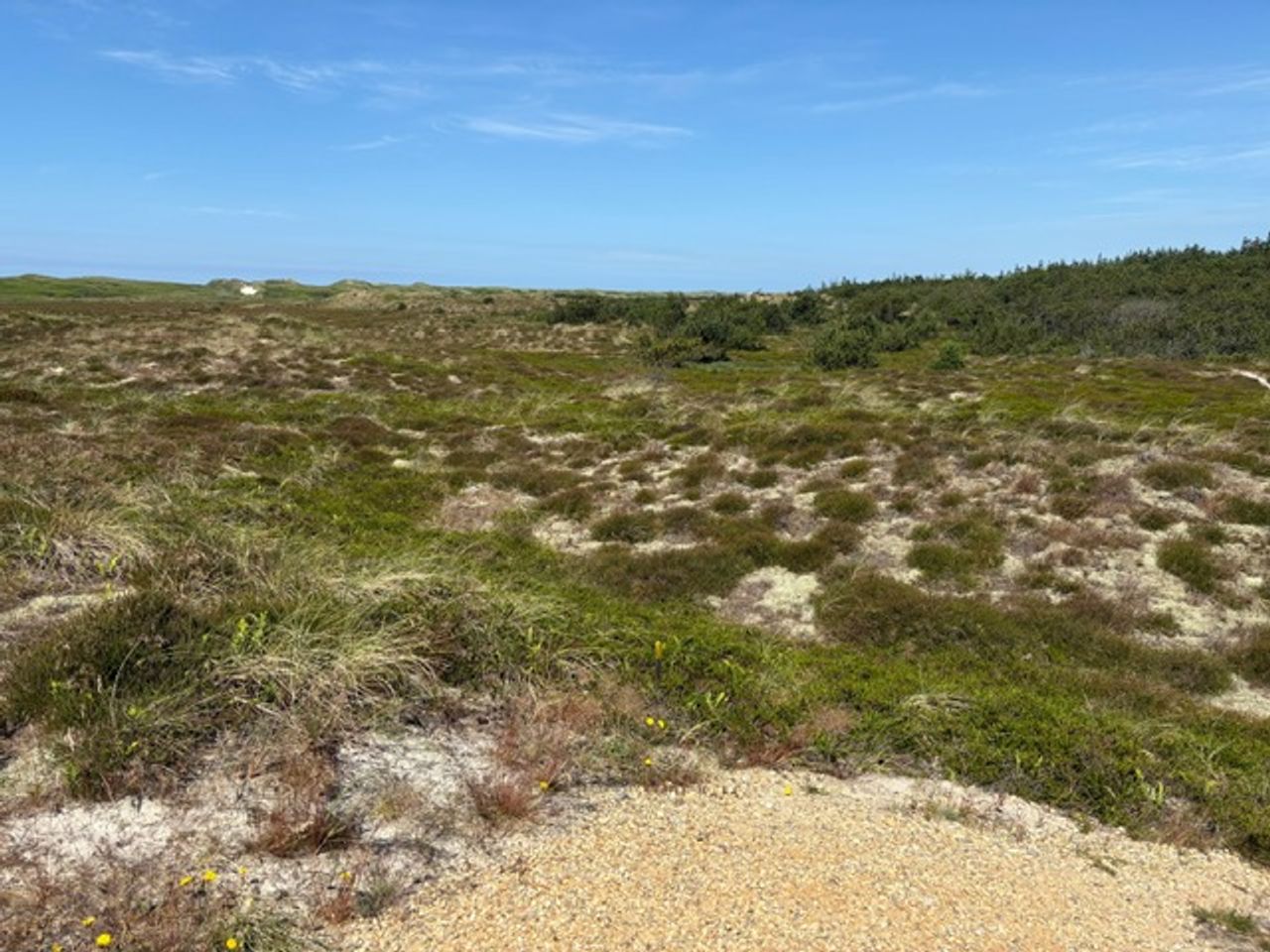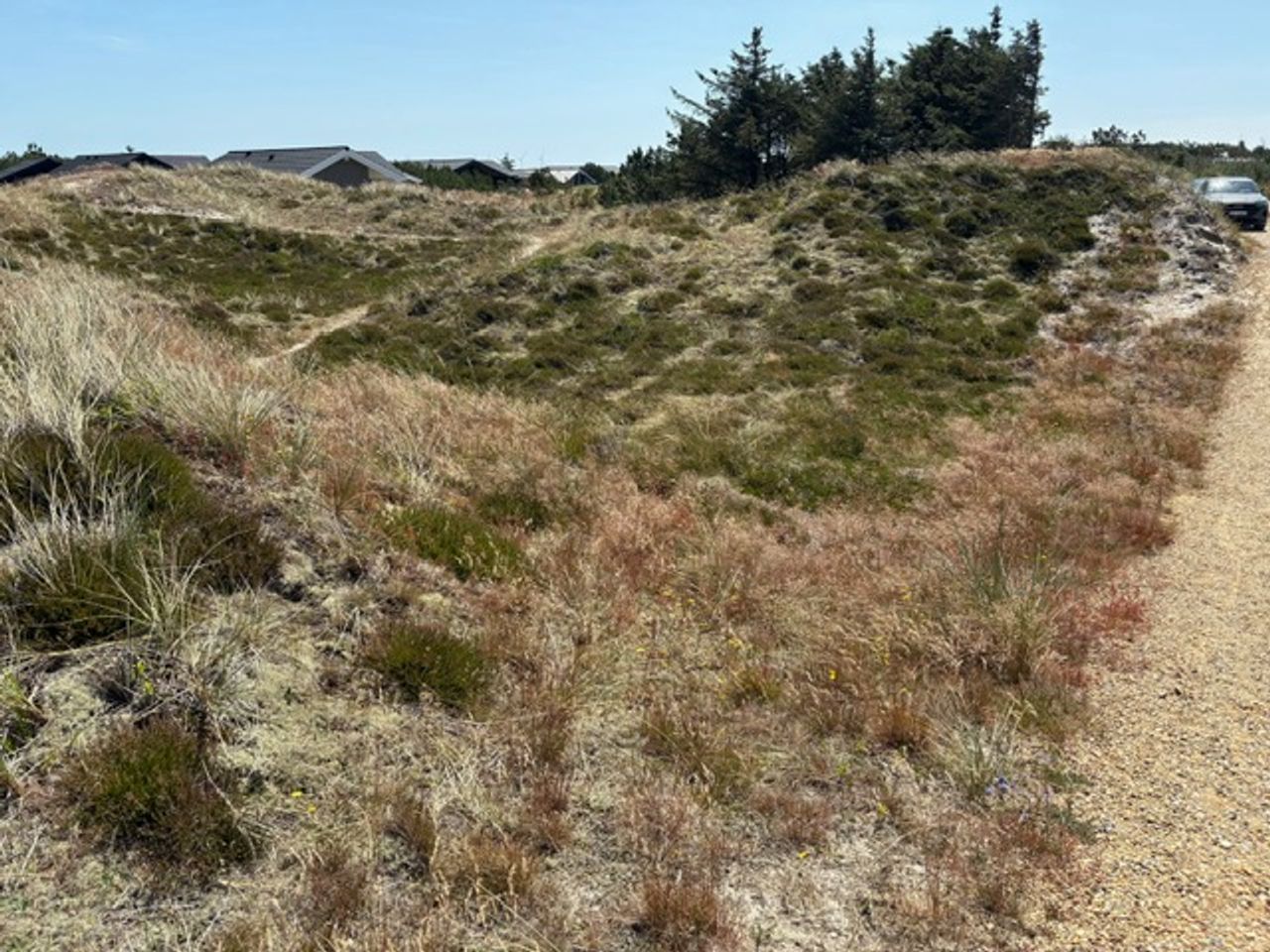 På havsiden af landevejen, der fører gennem et af Danmarks smukkeste naturscenerier mellem Ringkøbing Fjord og Vesterhavet finder vi denne attrative lyngkuperede sommerhusgrund ved blind stikvej kun 5-600 m`s gang fra det evigt brusende Vesterhav ved dejlige Bjerregård Strand. Området er et næsten fuldt udbygget sommerhusområde og der gælder for langt de fleste grundes vedkommende en begrænsning, så der maximalt kan opføres sommerhuse på 120 m2 boligareal + carport og redskabsrum samt terrasser (bemærk: idag tæller udhæng over 50 cm samt overdækkede terrasser med i det såkaldte "fodaftryk" og kan begrænse det tilladte boligareal.