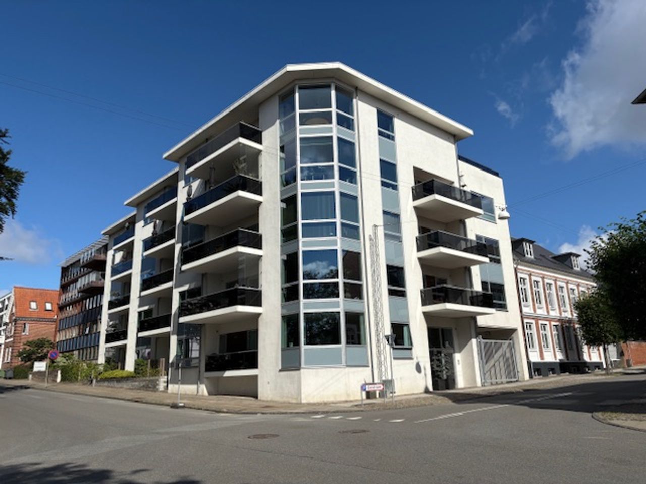 Nedkørsel til den aflåste parkeringskælder sker via port mod Englandsgade.